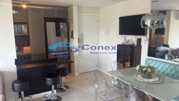 Apartamento com dois dormitórios sendo uma suíte, sala ampla para dois ambientes, varanda, cozinha americana com armários planejados embutidos, área de serviços, banheiro social e uma vagas de garagem. Pronto pra morar, vale a pena conferir